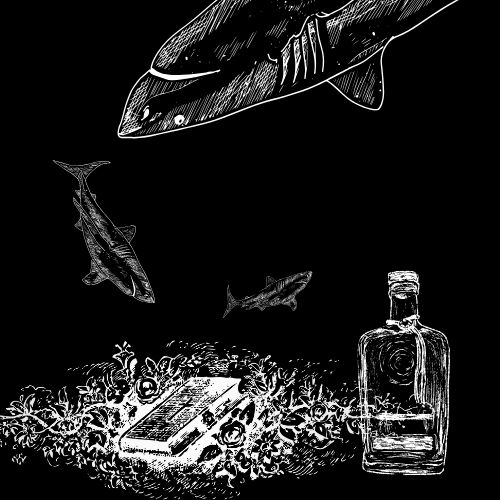 キュウカンチョウだの鸚鵡だの、絵でしか見たことのないゴクラク鳥だの、おいしいヤシの実もパイナップルも、バナナも赤と紫の大きな花も香気のいい草も、あの恐ろしい文章を読んでから何時何時でも港の岩の隙間には麦酒瓶がフジツボを付けながら固く挟まっている情景が思い出されて、楽しめた試しがありません。南国の葉が生い茂って、朝霧がかかり、葉に朝露がついてキラキラと輝いています。生暖かい風が優しく漂う、極楽のような場所なのに、なんとも言えない気持ちの悪さ。海は透き通った翠玉色、神様の足台に登りお祈りをするために頭を下げれば、底の見えない海からフカが二、三匹泳いでいるのが見えるでしょう。